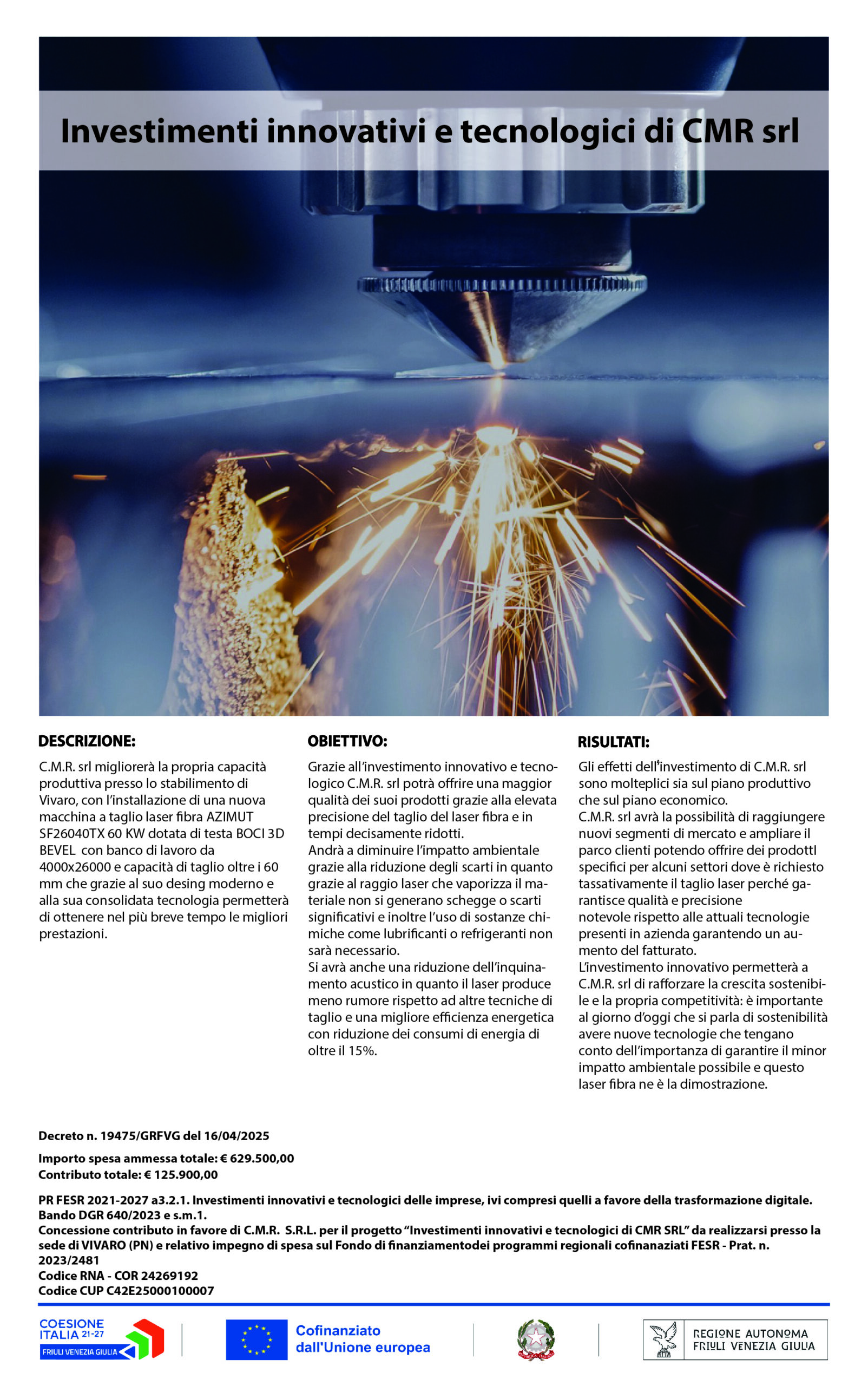 Il punto di forza di CMR sta nell’avvalersi delle più moderne e avanguardistiche tecnologie disponibili sul mercato di settore, per assicurare al cliente un lavoro a regola d’arte, sicuro, strutturato e destinato a durare a lungo nel tempo.